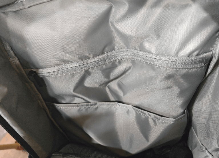 - 하단에는 파우치 포켓이 있어 충전기, 보조배터리, 지갑 등을 넣기에 적합